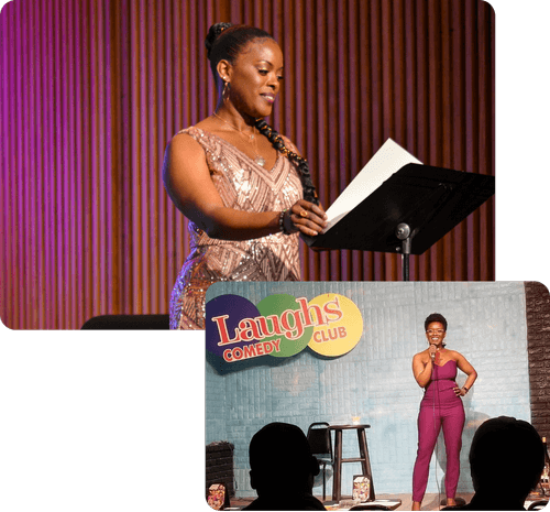 You might encounter her narrating evocative concerts and plays, documenting a treasured community memory, hosting comedy showcases or even popping up at open mics across the country. In every scenario, Kiesha aims to delight in the experience of relating to those around her through the arts.