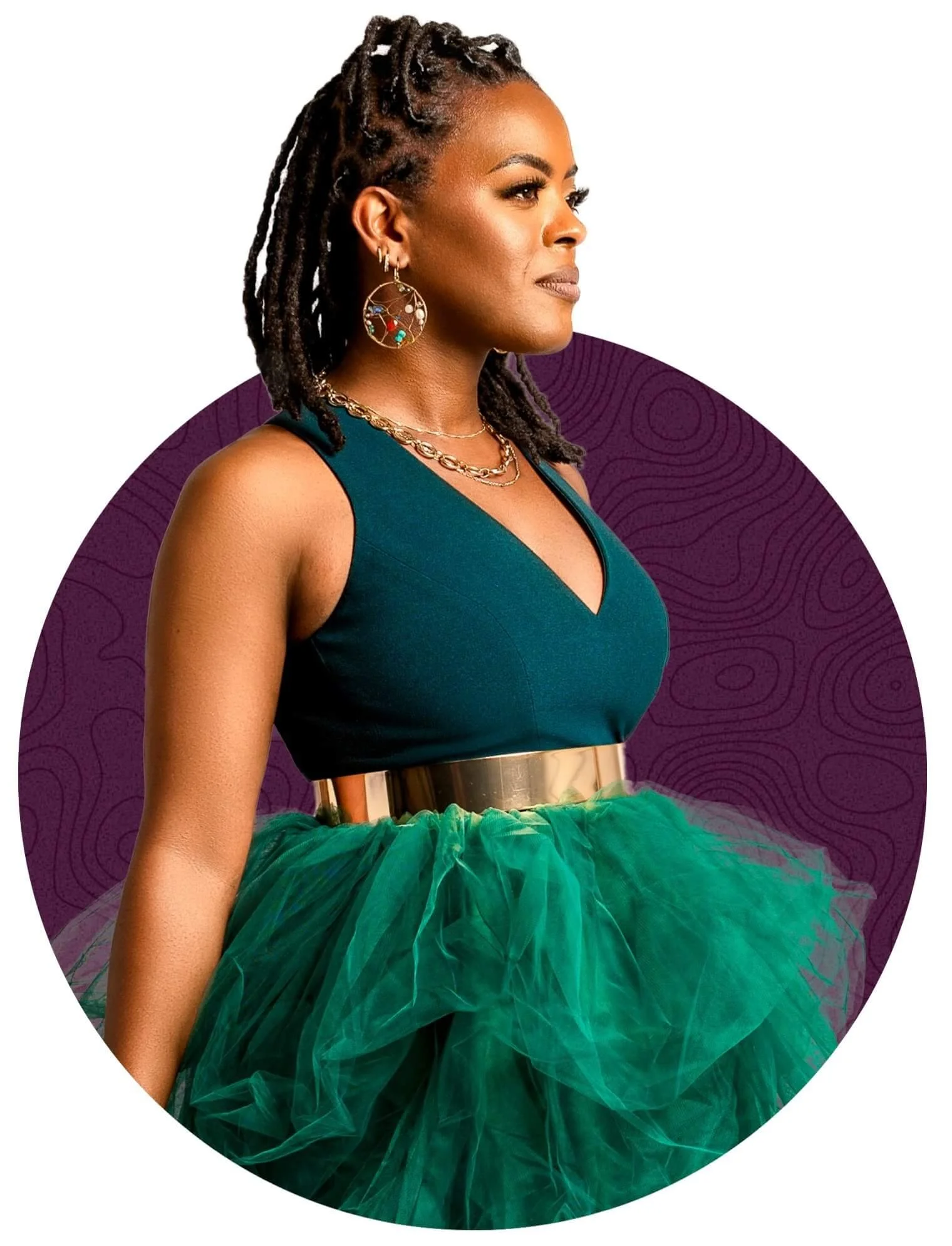 Liberation is both the path and the goal. I believe in creating spaces (on stage, online, and in community) where people can nurture their spirits and release the exploitative narratives that try to keep them small in service of systems of oppression. Liberation means we get to be whole - on our own terms.